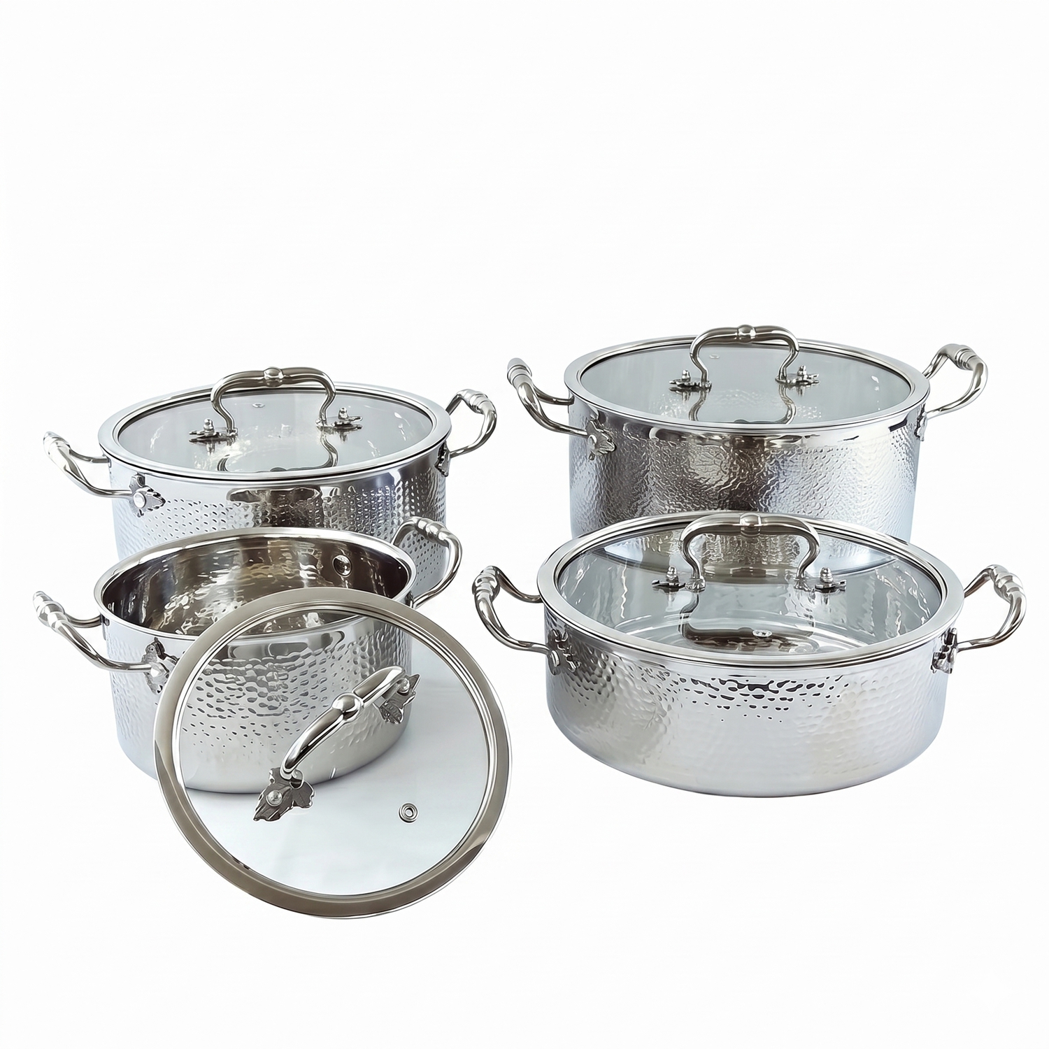 In the competitive global culinary market, professional buyers look for more than just kitchen tools—they seek a balance of superior performance, lasting durability, and aesthetic appeal. As a leading manufacturer specializing in high-end stainless steel solutions, we are proud to present our Premium 3-Ply Stainless Steel Cookware Set with a Hammered Finish.