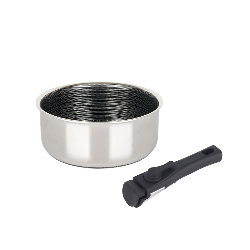 This stainless steel Saucepan, with a removable handle, can be easily stacked to save up to 75% storage space. Perfect for compact kitchens, RVs, or those looking to maximize cabinet efficiency.